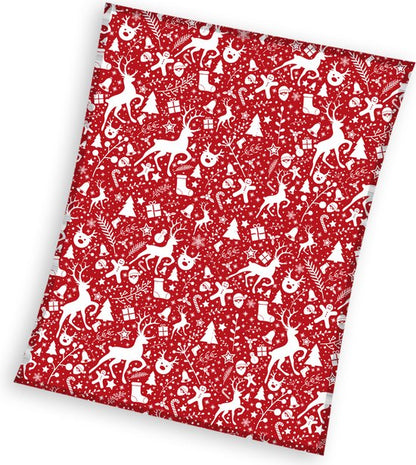 - Design: Rood met afbeeldingen van rendieren, kerstbomen en cadeautjes