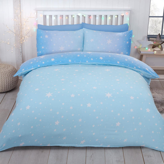 Sterren Starburst Tweepersoons Dekbedovertrek Blauw Flanel