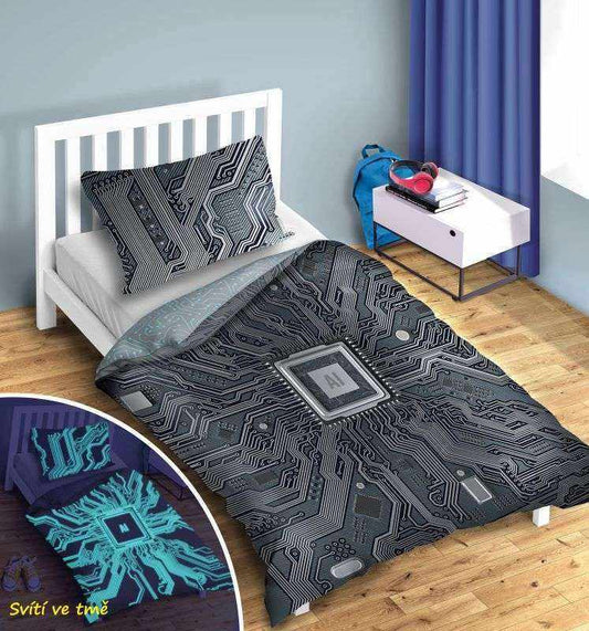 Dekbedovertrek 140x200 Glow in the Dark Printplaat Microchip Motief Kussensloop 70x90