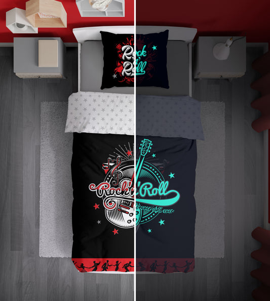 Rock 'n Roll Dekbedovertrek 140x200 Duurzaam Katoen 2in1 GLOW in the Dark