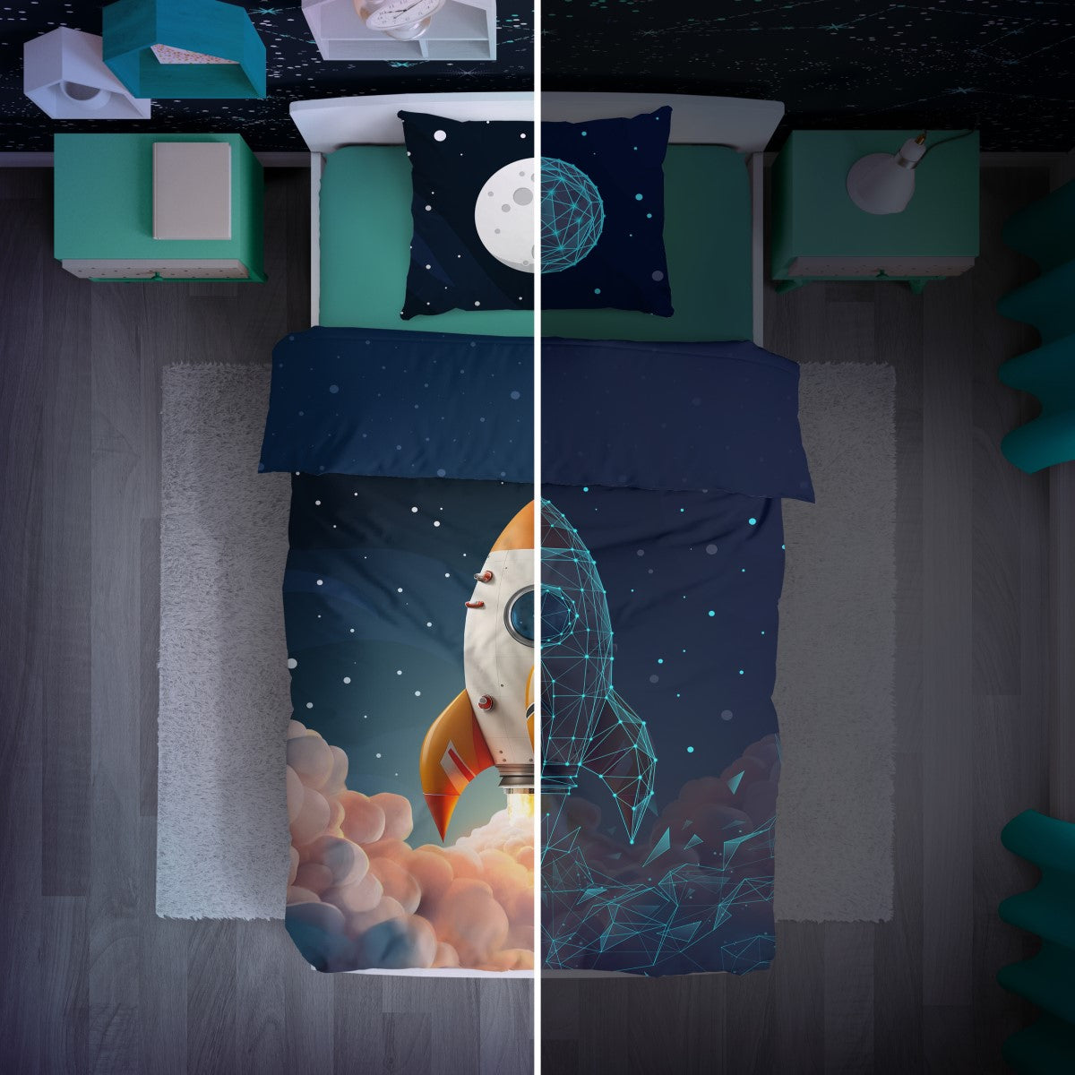 - GLOW IN THE DARK Rocket Dekbedovertrek